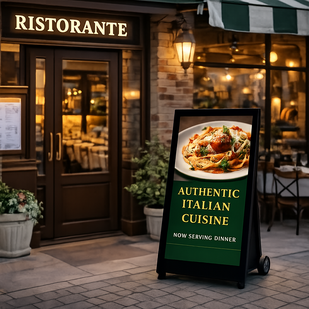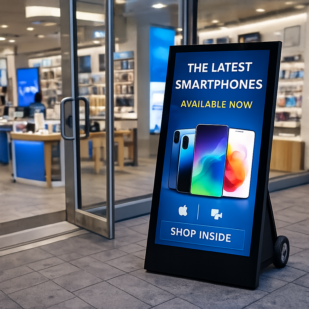 El Tótem Portable de Exterior con Batería es una solución avanzada de publicidad digital diseñada para ofrecer máxima visibilidad en exteriores sin depender de una conexión eléctrica constante.